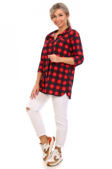 Фото товара 21795, свободная красная туника в клетку